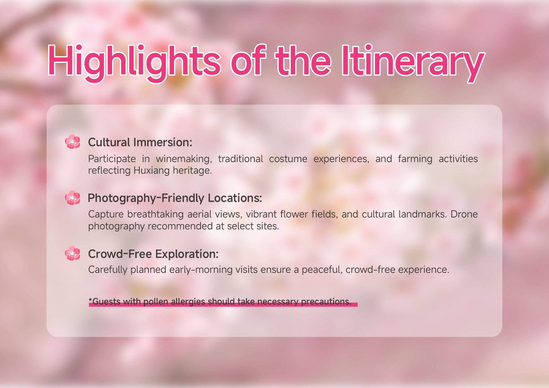 1. Cultural Immersion: Participate in winemaking, traditional costume experiences, and farming activities reflecting Huxiang heritage.