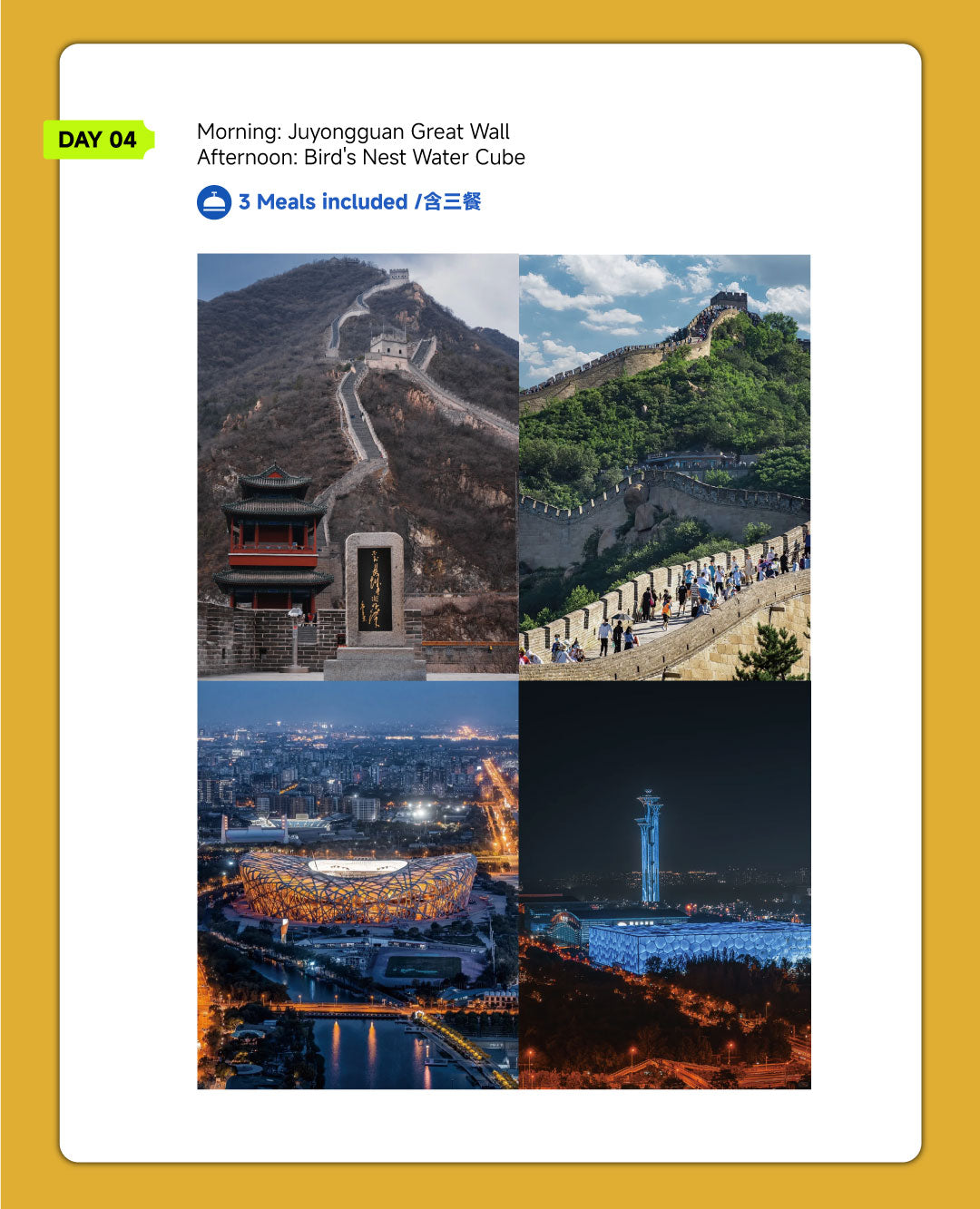 This immersive journey combines ancient heritage with modern sights, offering a complete Beijing experience.